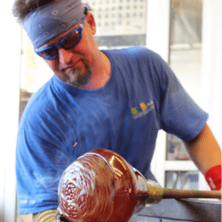 I stumbled in to glass blowing in 1998 needing a 3D art credit for a graphic design degree at UT Arlington. The glass blowing elective turned into 14 semester journey, finishing with a BFA in Glass Art. 20+ years after my 1st gather, I’m still excited by what glass can do and the opportunity to share it with others.