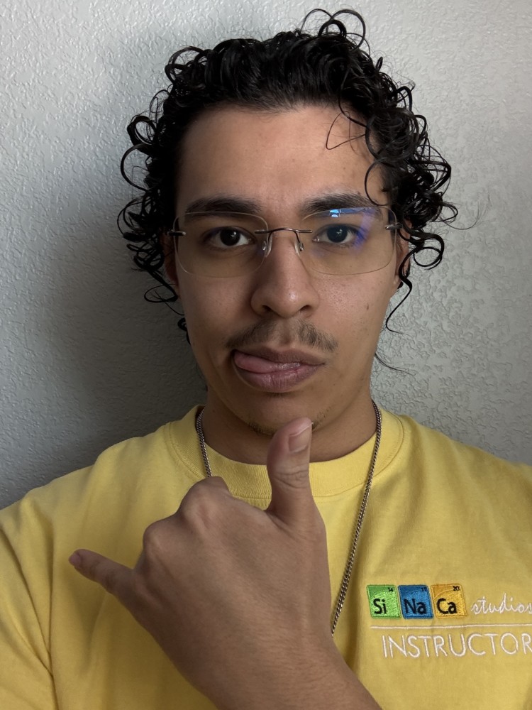 I’ve been part of the SiNaCa family since 2022, where I split my time between teaching glassblowing and serving as Community Partnership Specialist (which is a fancy way of saying I love connecting people through art). I earned my MFA in Glass Studies from the University of Texas at Arlington, where I also teach college art classes. When I’m not wrangling 2,100-degree molten glass, I’m guiding yoga students to find their flow—turns out both practices require focus, breath, and a good sense of humor. My enthusiasm for making is downright contagious—I never get tired of seeing that spark of joy when someone creates something they’re proud of.