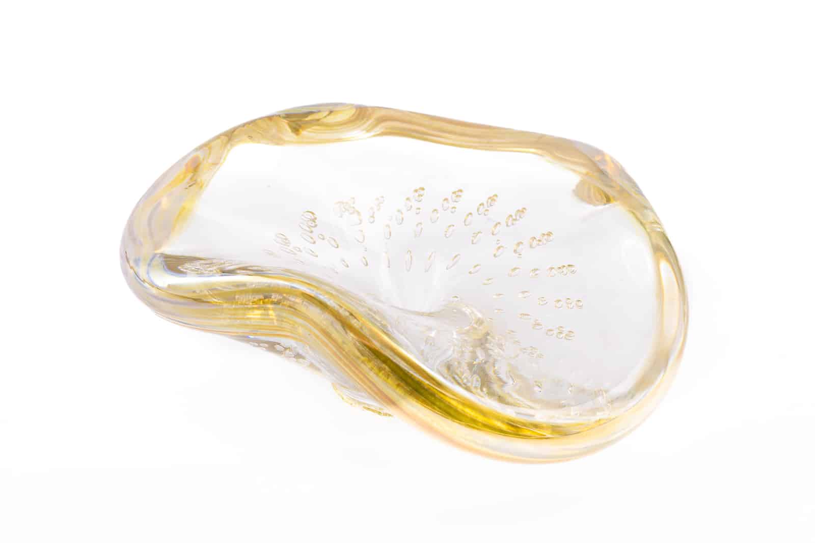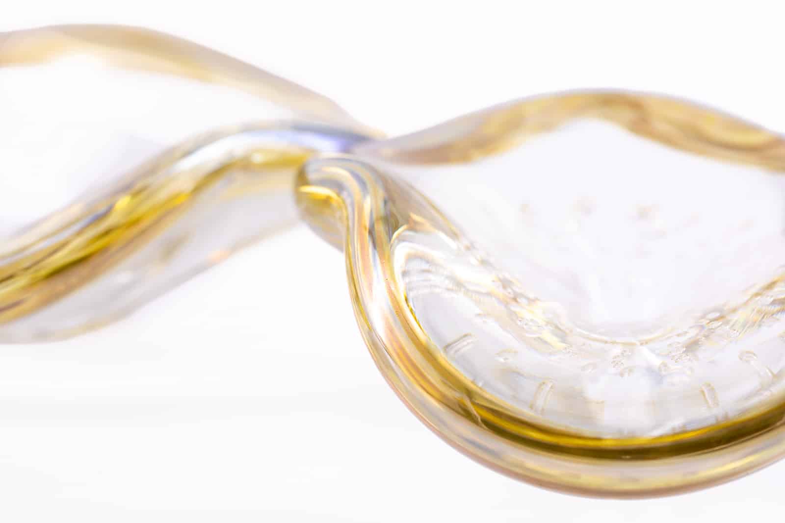 A custom hand blown piece that invites conversation and interaction with each use. Elegantly accented with a gilded edge, each piece is unique and hand-made by our SiNaCa artists.