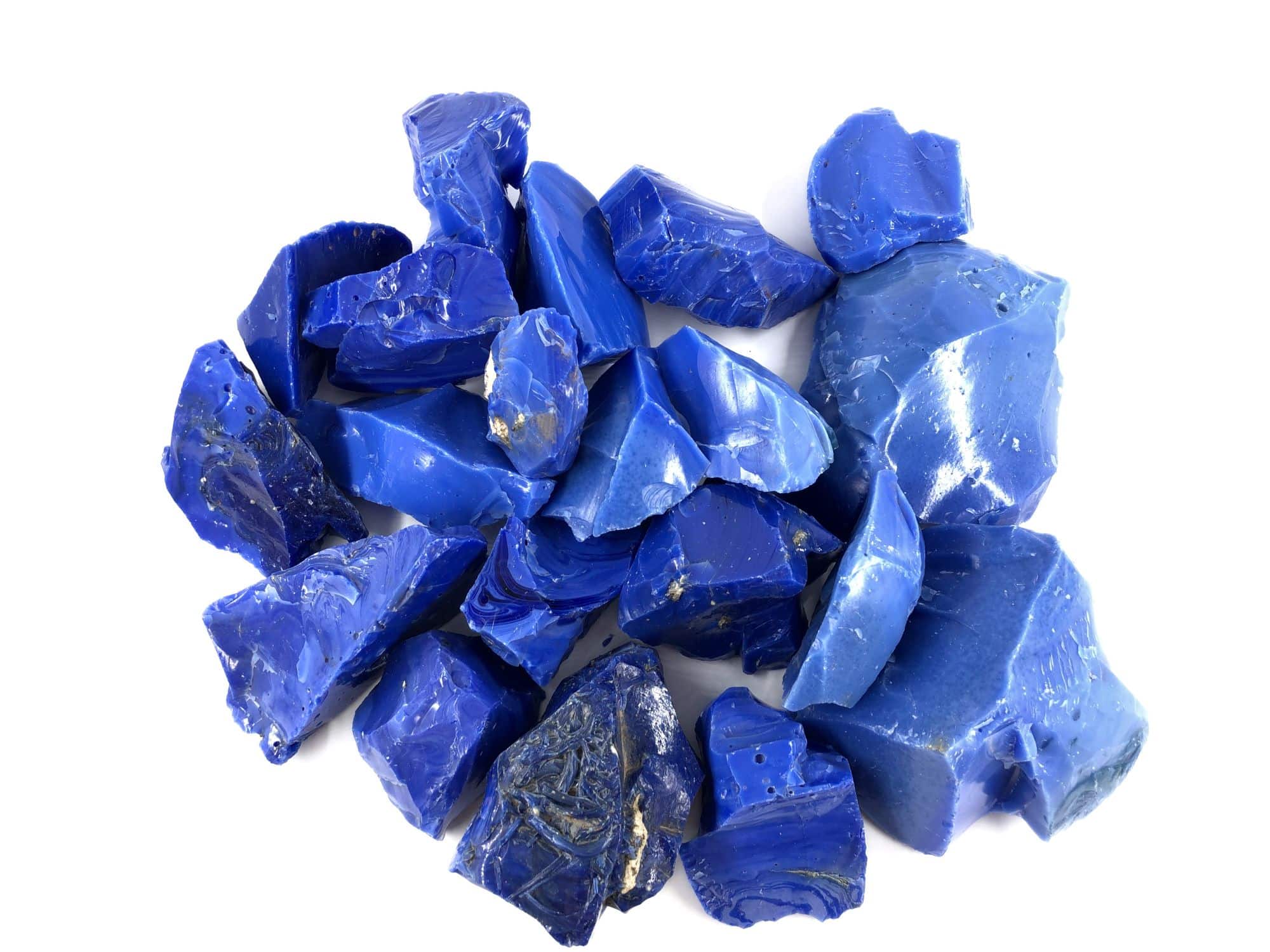 Glass has been melted in a furnace and broken into pieces 2″- 6″ in size