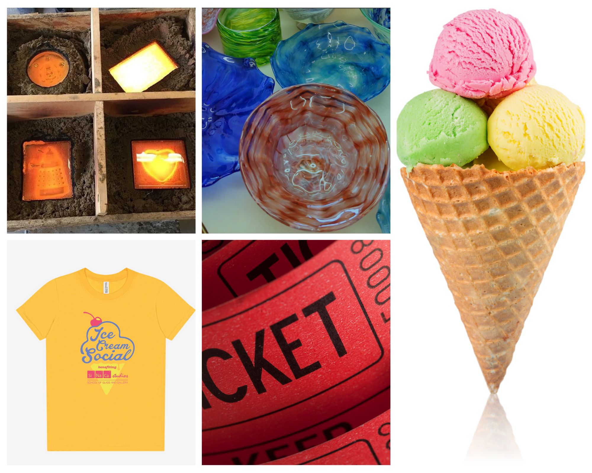 Bundle Discount Only Available Through 5/18/2026 Save $40 | on 1 × Sandcasting Workshop; 1 × Hand Crafted Glass Bowl; 1 × Ice Cream Scoop; 1 × Custom Event Tee; 2 × Smash the Popsicle Raffle Tickets