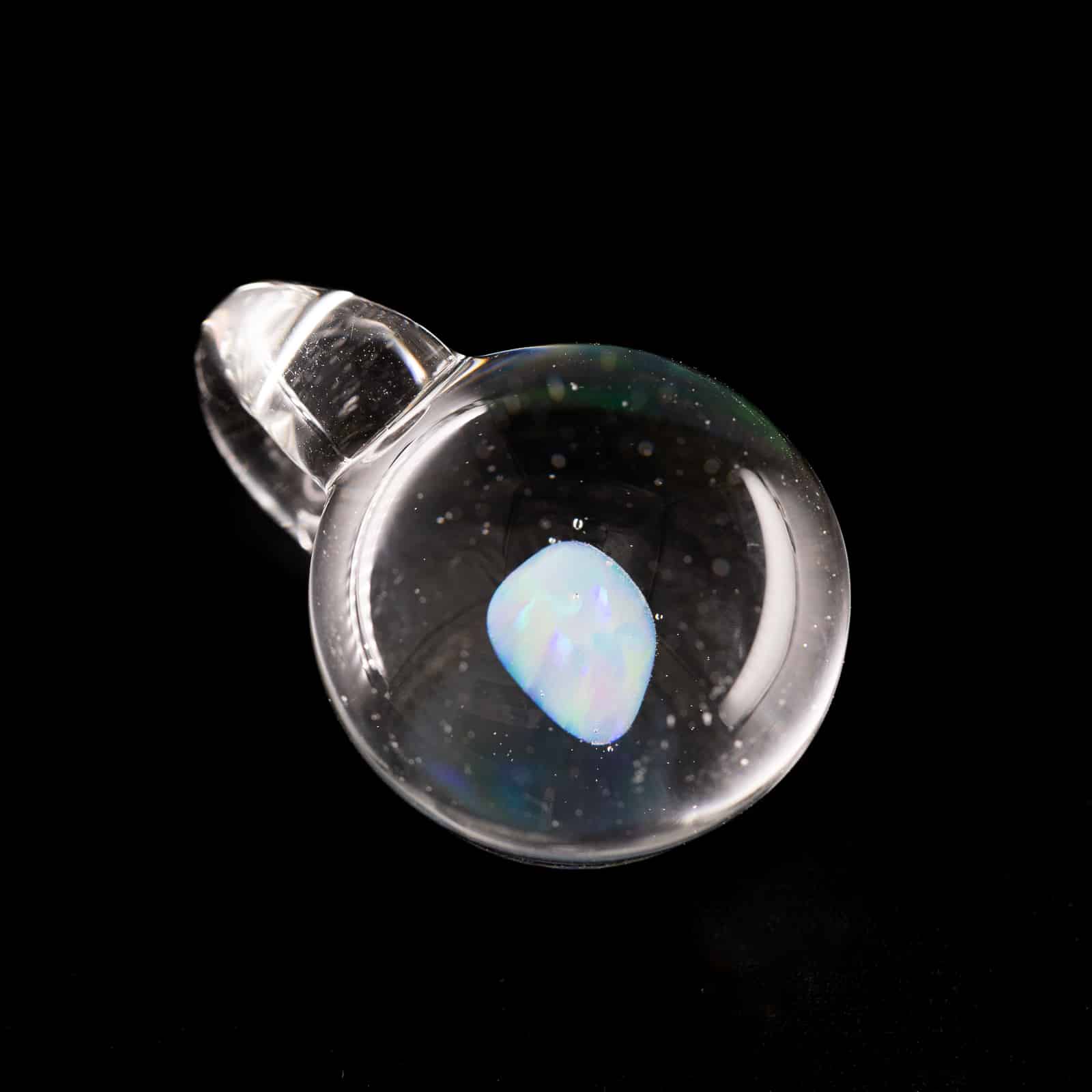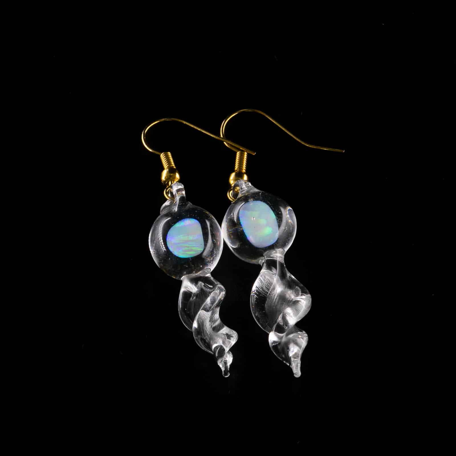 When asked “Why should someone bid on this item?”, artist Christa Westbrook said, “Each item has been created with the right amount of shine to be worn for any occasion. The sparkle of the rainbow opals levitated in the crystal clear glass reminds me of arctic ice floating in the ocean. The pendants each have a unique touch of dichroic embedded beneath the surface creating a shimmer of color that shifts in the light.”