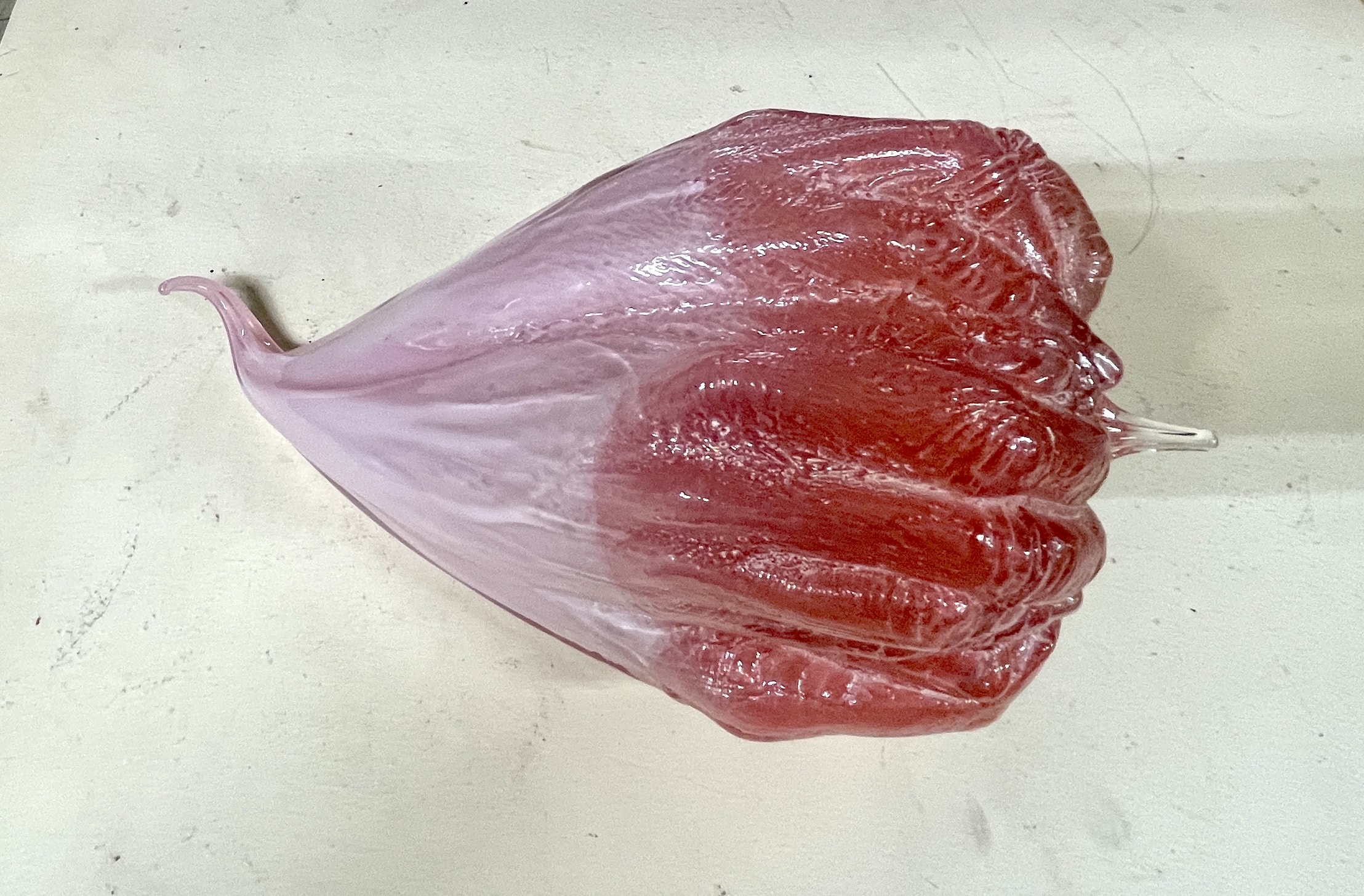 Blown glass, molded and sculpted hot.
